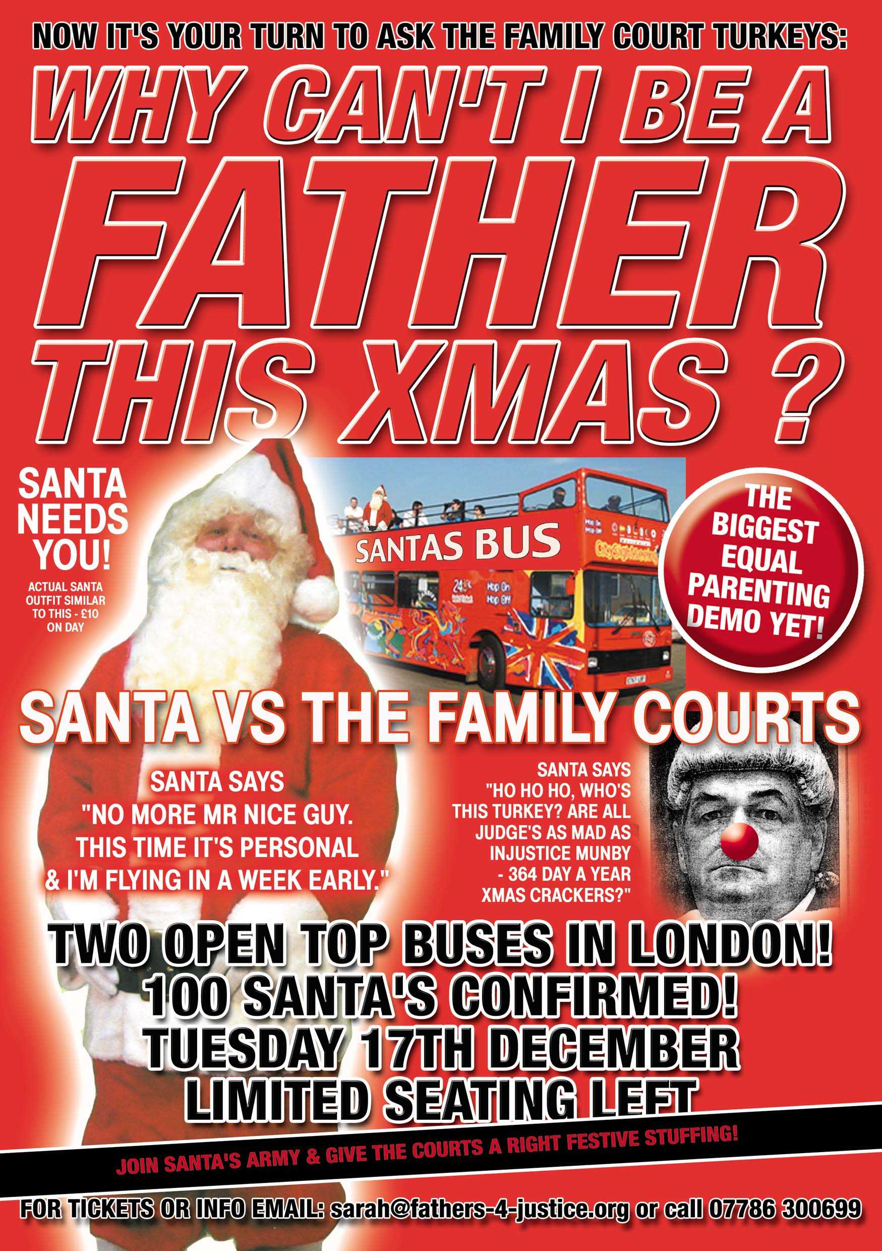 100 fathers in Santa outfits, demanding that they should be allowed to be a 'father' this