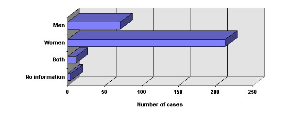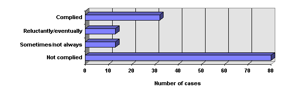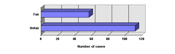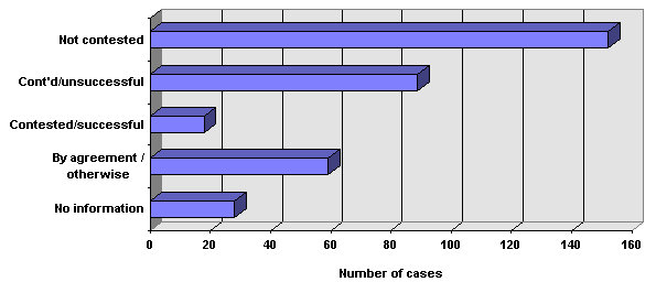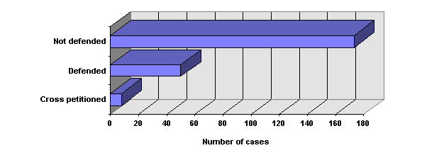 All quotations from case studies are given "in italics", and full copies of the case studies are available in the book [2]. The most significant statistics are given here mainly in chart form, and more comprehensive statistics are also given in the book [2]. It should be noted that the number of cases given in the charts, are number of cases out of the 346 respondents in the survey, but it should also be noted, that it must not be expected that the issue in each chart is relevant to all respondents. The charts primarily show proportions of outcomes rather than absolute numbers. For certain outcomes of divorce, section 1 includes estimates of both the probability of that outcome, and an estimate of absolute numbers in the UK, with the estimates based on extrapolations of the probability onto the population.