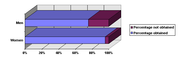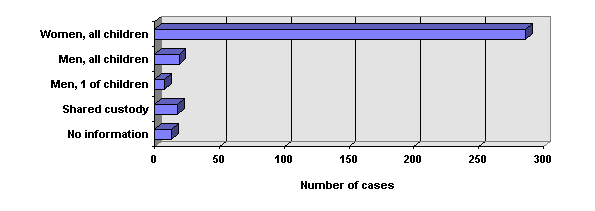 "After the cases, about 80% of women had custody of all their children. In more than 80% of cases, the man reported some obstruction to contact. Nearly 30% of fathers had lost all contact with their children, and more than 30% reported the mother as being in contempt of a court order. No mothers had been prosecuted for contempt."
