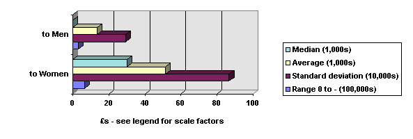 Legal costs had a median amount of about �10,000, with a range up to about �1,000,000. More women applied for legal aid, and more of those were granted it. The median financial loss to the family was about �50,000. Most homes were sold, although in those cases in which the home was not sold, the man more often stayed in that home. Women given the home nevertheless often sold it."