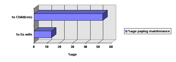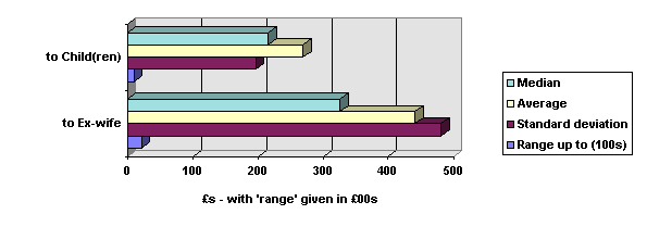"More than 50% of men paid maintenance for their children, and nearly 15% paid maintenance for their ex-wife. The median amounts were over �200 per month for the children, and over �300 per month for the ex-wives. Maintenance had a median value of about 20% of earnings. Most court order amounts were paid, while many Child Support Agency (CSA) derived amounts were being challenged."