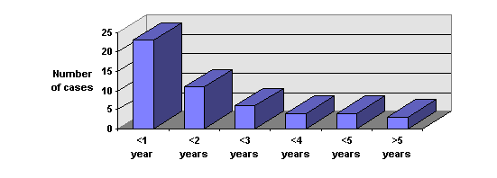 Results : are given in Figure 2.7. There were 4 reported cases of ages close to 0, indicating that cases are occurring close to, or before, the birth of children.
