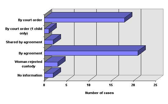 A draft questionnaire was constructed and trialled on four FNF members and one independent (non-divorced) person. The final questionnaire was constructed on the basis of this feedback. The questionnaire consisted of two parts - a set of questions and responses which produced statistical data and a free text narrative which was used to construct a large part of the "dossier" of case studies to be incorporated into a book. Only the statistical data are reported here.