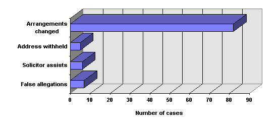 These data may be viewed as representative of FNF members but not necessarily of divorced men in general. This is obviously because FNF members are, by definition, men who are experiencing difficulties regarding their children. However it should also be borne in mind that there may be many men who, for one reason or another, experience similar or worse problems yet fail to join FNF. CG have certainly encountered such cases where, for example, either the man has suffered so badly that he just withdraws from the scene altogether, or does not feel he can share his experiences in public and fights his own private battle. It is known from FNF local contacts, who usually receive the first phone call from a man with difficulties, that only approximately 1 in 10 such callers subsequently join FNF. The men usually contact FNF when they are already enmeshed in the system and are finding that the system does not protect them and their children.
