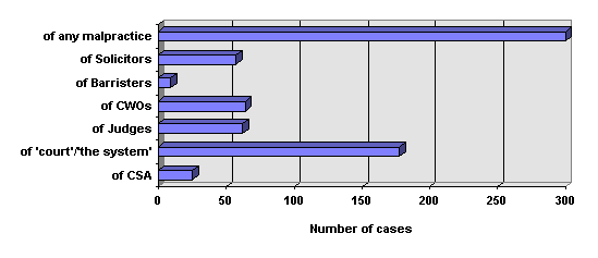 The data and analysis on malpractices has been limited by that available in the survey. Further investigation is recommended to uncover the extant to which the components in the legal system are not operating as intended, and the extent to which Parliaments intentions are not being met. Individual cases require investigation, as well as the scale of these problems in the population of fathers who have had recourse to law in order to protect themselves and their children.