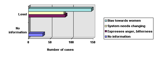 The vast majority of men reported health problems, usually stress related and also affects on career. Additionally, the vast majority reported negative attitudes against women and the law, with moderate to very strong views expressed.