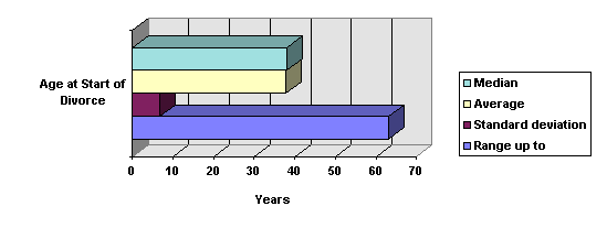 Comments : the median of nearly 40 years, with a small standard deviation of less than 7, shows that the ages close to 40 years are a dangerous time for a man in a marriage.